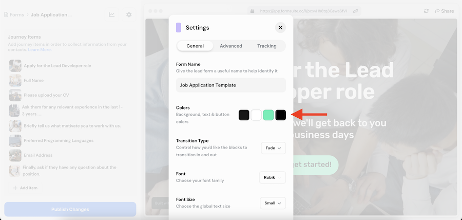 colours play a big part in making your forms feel like they belong to you. Changing the global colours in your form is straightforward.