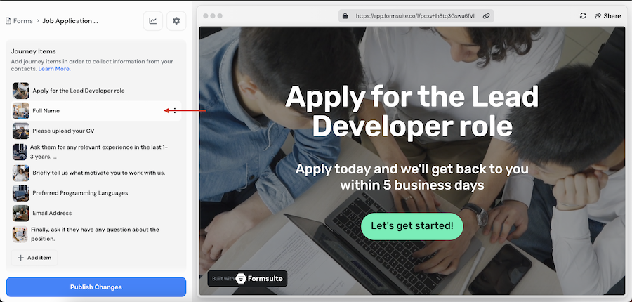 To start, click on the on the journey item you'd like to edit. You can select which one to edit by clicking on it from the journey item list on the left sidebar.