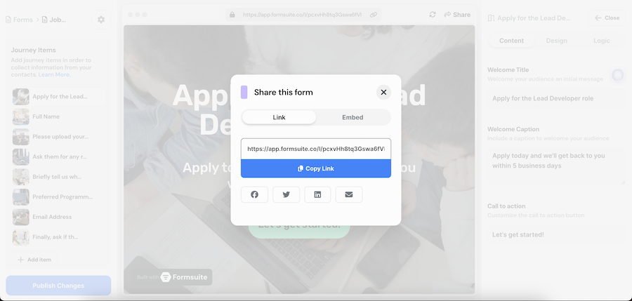 Sharing your form is a key part of your form's journey. What's the point of making a form if no one is going to see it?