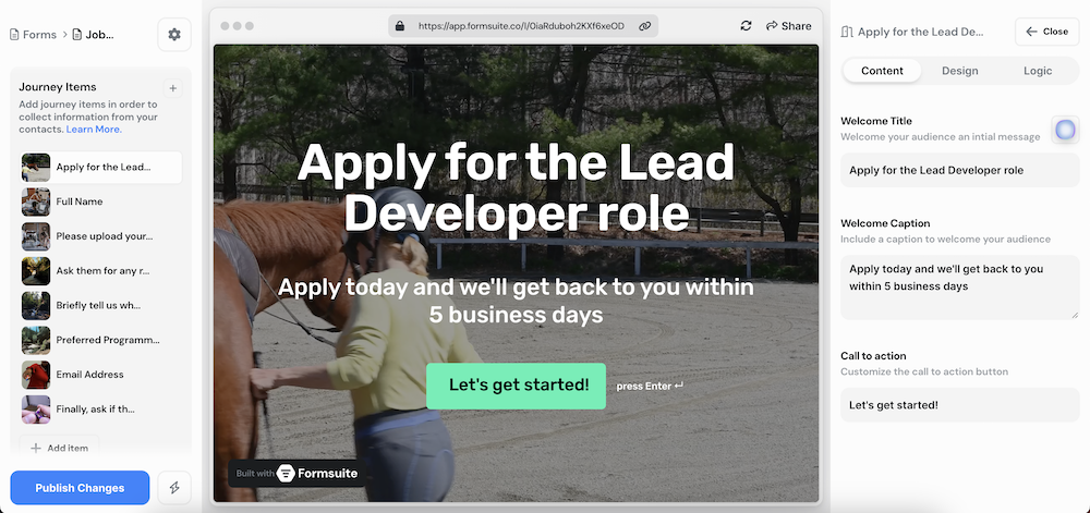 Formsuite is the only form builder you need. It's easy to use, powerful, and has everything you need to create beautiful and engaging forms.